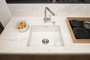 Alle ein bis zwei Jahre sollten Sie die Imprägnierung Ihrer Naturstein-Arbeitsplatte erneuern. Achten Sie hier auf ein lebensmittelverträgliches Präparat und reinigen Sie die Arbeitsplatte vorher besonders gründlich.