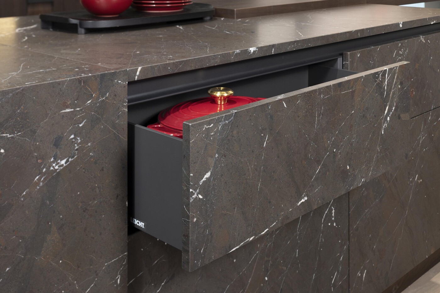 So vieles spricht für Keramik: Sie verleiht Küchen ein besonders edles Aussehen und ist darüber hinaus auch noch pflegeleicht, abrieb- und schnittfest, hygienisch und UV-beständig. Fleckenbildung ist so gut wie ausgeschlossen: Keramik besitzt eine nahezu geschlossene Oberfläche, daher ist auch keine Imprägnierung nötig. Und wie elegant es allein aussieht, wenn eine Kücheninsel von allen Seiten mit derselben Keramik gestaltet ist!