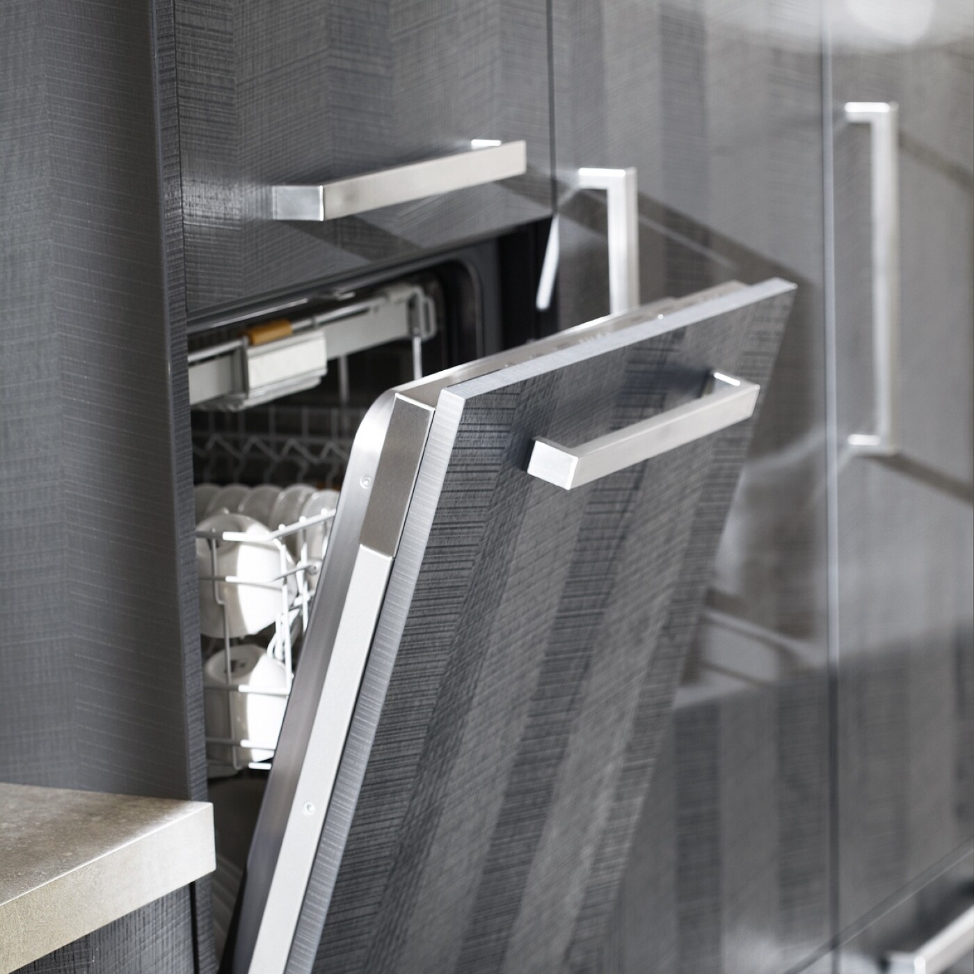 Dass man den Backofen auf Sichthöhe einbauen kann, das hat sich ja mittlerweile in den Köpfen festgesetzt. Aber denken Sie mal weiter: Was ist mit dem Geschirrspüler? Hier muss man sich doch viel mehr und viel öfter bücken, um ein- und auszuräumen. Auch hier ergibt ein halbhoher Einbau Sinn.