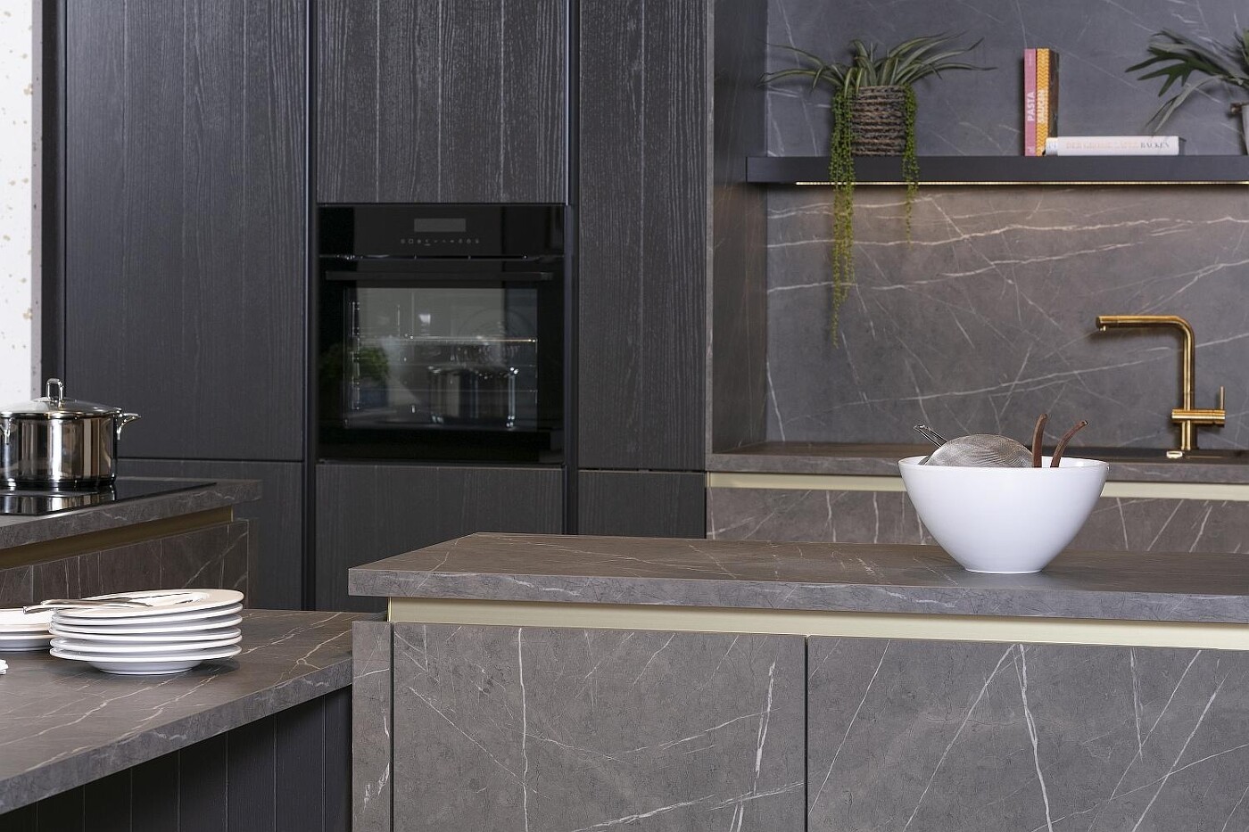 Gute Nachrichten für alle Naturstein-Liebhaber: Die technische Nachbildung von Stein wird dank ausgeklügelter Herstellungsverfahren immer besser. Auf den ersten Blick ist oft gar nicht erkennbar, dass es sich gar nicht um echten Stein, sondern Melamin handelt. Ob Granit, Marmor, Schiefer oder Keramik – da gibt es viele edle Küchenvarianten. Sprechen Sie uns an, wenn Ihnen eine Arbeitsplatte in Naturstein oder auch Naturstein-Optik noch zu wenig Stein in Ihrer Küche ist!